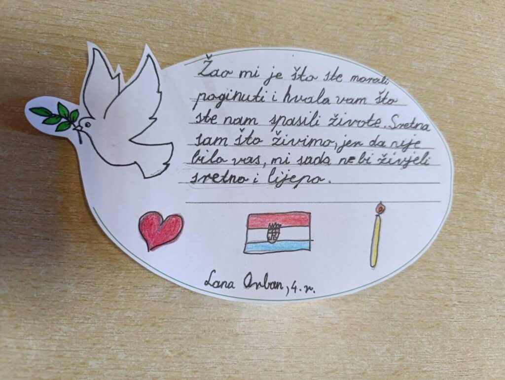 Prošlog tjedna prisjećali smo se svih njih na različite načine: obrađivali prigodne tekstove i pjesme, izrađivali likovne radove, slagali panoe, zapalili svijeće u Parku branitelja…