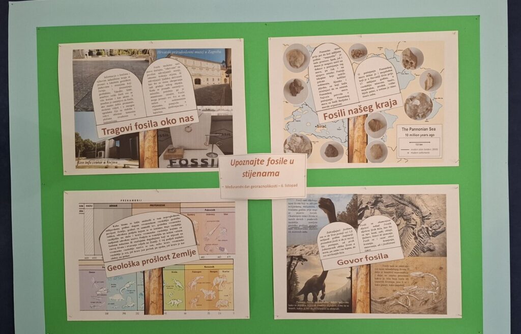 Nedavno su učenici na terenskoj nastavi imali priliku posjetiti Geo-info centar u Voćinu i Park šumu Jankovac te su naučili kako je prostor Papuka i njegova okolica prava riznica fosila. Uz govor fosila pratimo geološku prošlost Zemlje, a fosili našeg kraja otkrivaju nam da su naši prostori nekada bili dijelovi Panonskog mora. Tragovi fosila svuda su oko nas, a naša škola posjeduje bogatu zbirku koja je izložena pod nazivom „Upoznajte fosile u stijenama“.