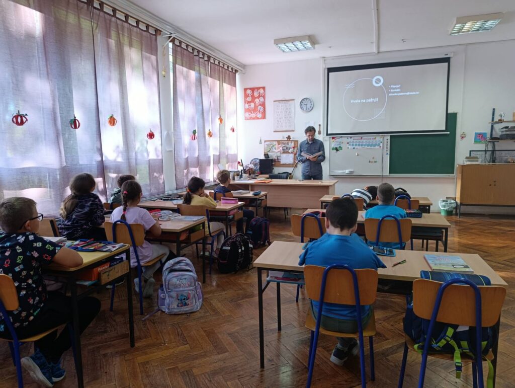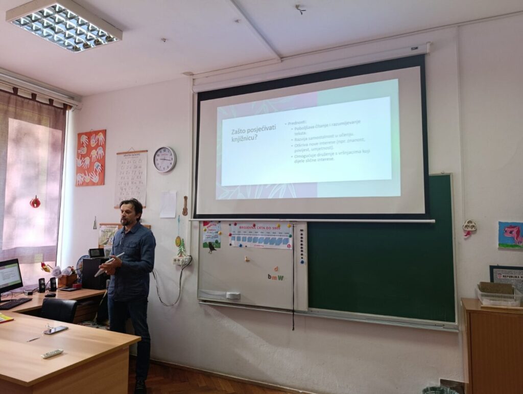 Na kraju listopada 2025. naš knjižničar Zdravko Palavra posjetio je 3. razred. Učenicima su objašnjeni sastavni dijelovi knjige, prednosti čitanja i funkcioniranje naše školske knjižnice. Na kraju se pročitala i jedna bajka. Učenici su izrazili zahvalnost na posjeti, a vjerujemo da će i osim čitanja lektire otkrivati i druga djela u našoj i drugim knjižnicama.